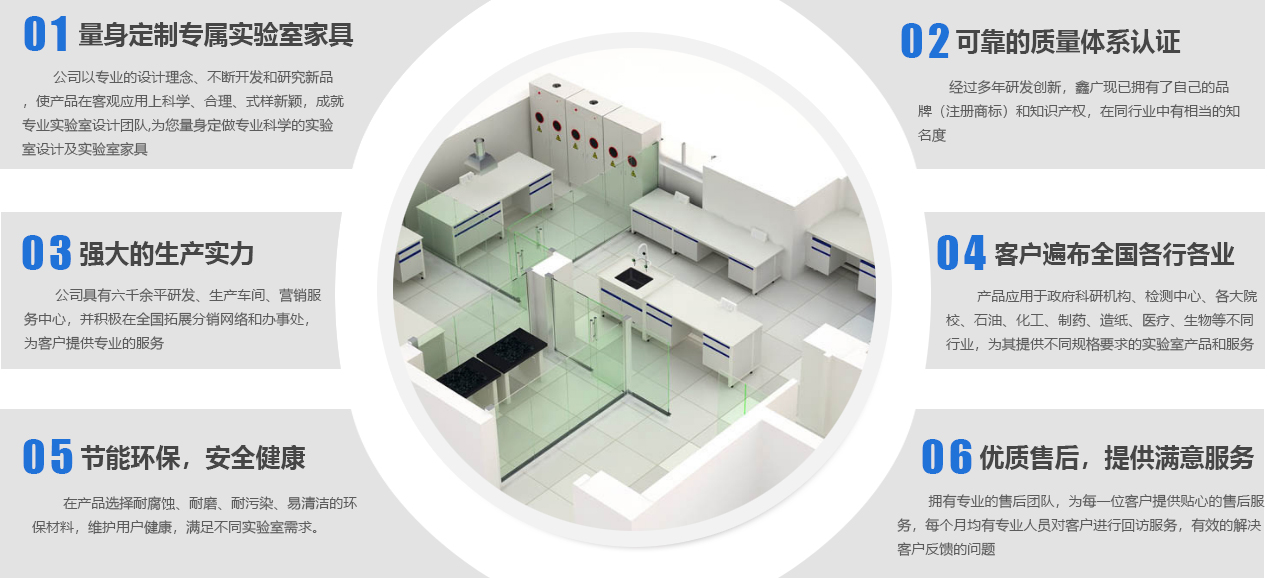 山東鑫廣實(shí)驗(yàn)設(shè)備科技有限公司成立于2007年,是一家位于山東濰坊的實(shí)驗(yàn)室家具工廠(chǎng)。作為實(shí)驗(yàn)室整體解決方案服務(wù)商,我們提供從實(shí)驗(yàn)室規(guī)劃、實(shí)驗(yàn)室設(shè)計(jì)、實(shí)驗(yàn)室裝修、實(shí)驗(yàn)室工程、實(shí)驗(yàn)室家具、實(shí)驗(yàn)室設(shè)備、到實(shí)驗(yàn)室服務(wù)等實(shí)驗(yàn)室建造一站式服務(wù),致力于專(zhuān)業(yè)研發(fā)、設(shè)計(jì)、生產(chǎn)實(shí)驗(yàn)室家具等產(chǎn)品及相關(guān)配套設(shè)備,并提供實(shí)驗(yàn)室建設(shè)全套解決方案的新型高科技企業(yè)。公司下設(shè)研發(fā)加工工廠(chǎng)、營(yíng)銷(xiāo)服務(wù)中心,并積極在全國(guó)拓展分銷(xiāo)網(wǎng)絡(luò)和辦事處,為客戶(hù)提供更專(zhuān)業(yè)、優(yōu)良的產(chǎn)品和服務(wù)。
